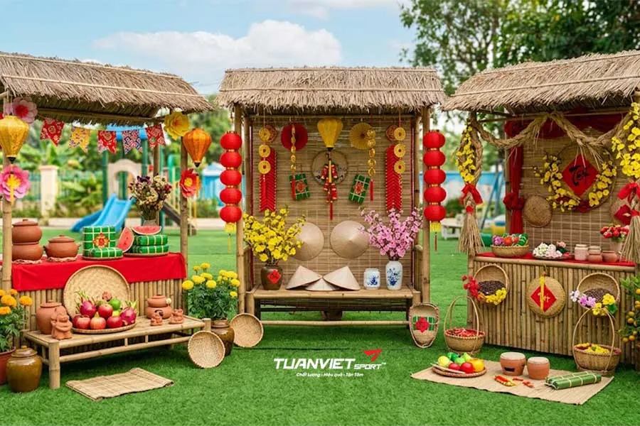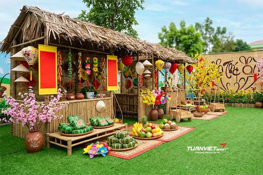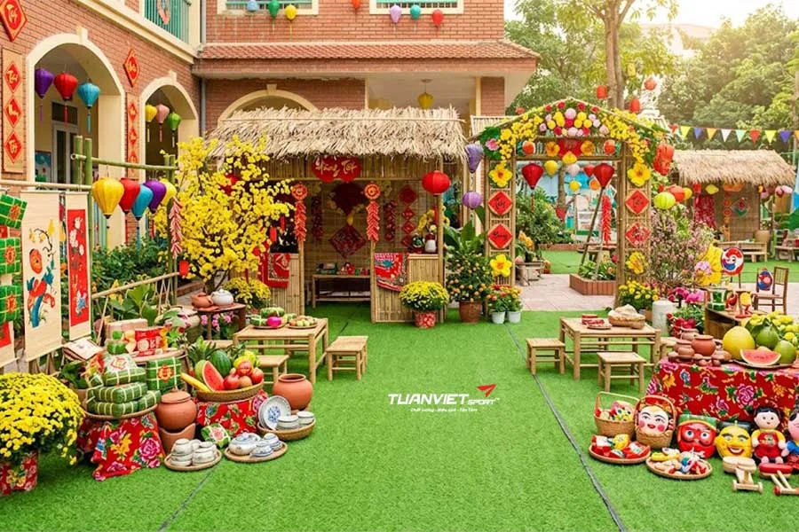 Trang trí chợ quê ngày Tết cho trường mầm non bằng cỏ nhân tạo không chỉ giúp tái hiện không gian truyền thống một cách trực quan mà còn tạo môi trường trải nghiệm ý nghĩa cho trẻ. Khi kết hợp đúng bố cục, vật liệu và yếu tố an toàn, không gian này sẽ vừa đẹp mắt vừa hỗ trợ tốt cho hoạt động giáo dục. Tuấn Việt Sport là lựa chọn đáng cân nhắc nếu bạn cần giải pháp cỏ nhân tạo phù hợp, dễ thi công và sử dụng lâu dài.