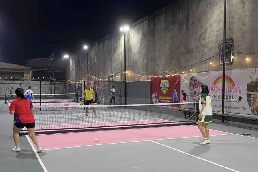 - Hệ thống chiếu sáng LED hiện đại, phân bổ đồng đều, đảm bảo ánh sáng tối ưu cho các trận đấu Pickleball cả ban ngày lẫn ban đêm.