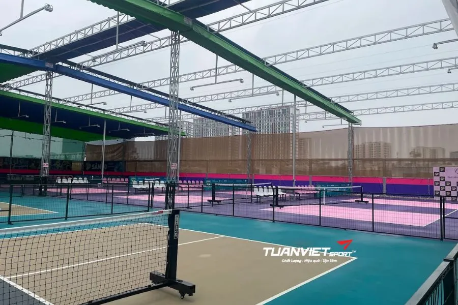 - Quy mô: cụm 16 sân được trang bị mái che hiện đại.