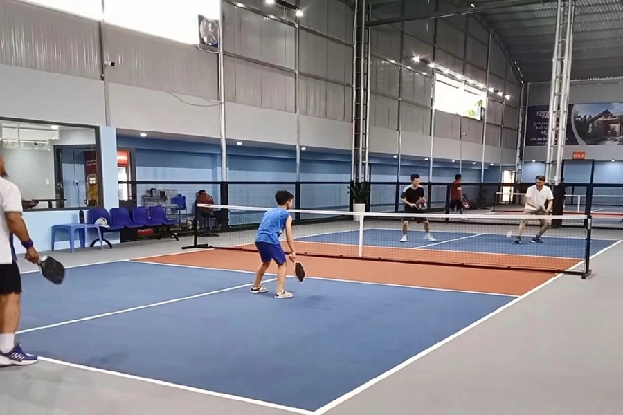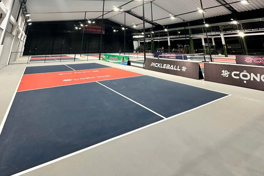 - Quy mô: Sân có tổng cộng 6 sân pickleball trong nhà, được thiết kế hiện đại và sạch sẽ.