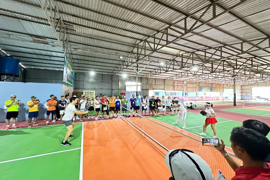- Dịch vụ và tiện ích: Hệ thống chiếu sáng LED chống chói hiện đại được bố trí đều trên sân, đảm bảo cung cấp đủ ánh sáng cho việc chơi Pickleball cả ban ngày lẫn ban đêm. Khu vực nghỉ ngơi rộng rãi, được bố trí đầy đủ ghế ngồi và quạt máy giúp người chơi thư giãn thoải mái sau khi vận động. Sân có cho thuê vợt, bóng Pickleball để tập luyện và thi đấu. Bãi giữ xe rộng rãi, đáp ứng được cả ô tô và xe máy. Trang thiết bị tại sân đều mới, sạch sẽ và đạt chuẩn. Ngoài ra, sân tổ chức các lớp học Pickleball cơ bản, giúp người chơi dễ dàng tiếp cận bộ môn này, rèn luyện kỹ năng và nâng cao trình độ chơi.