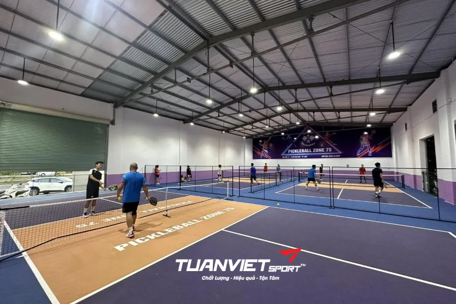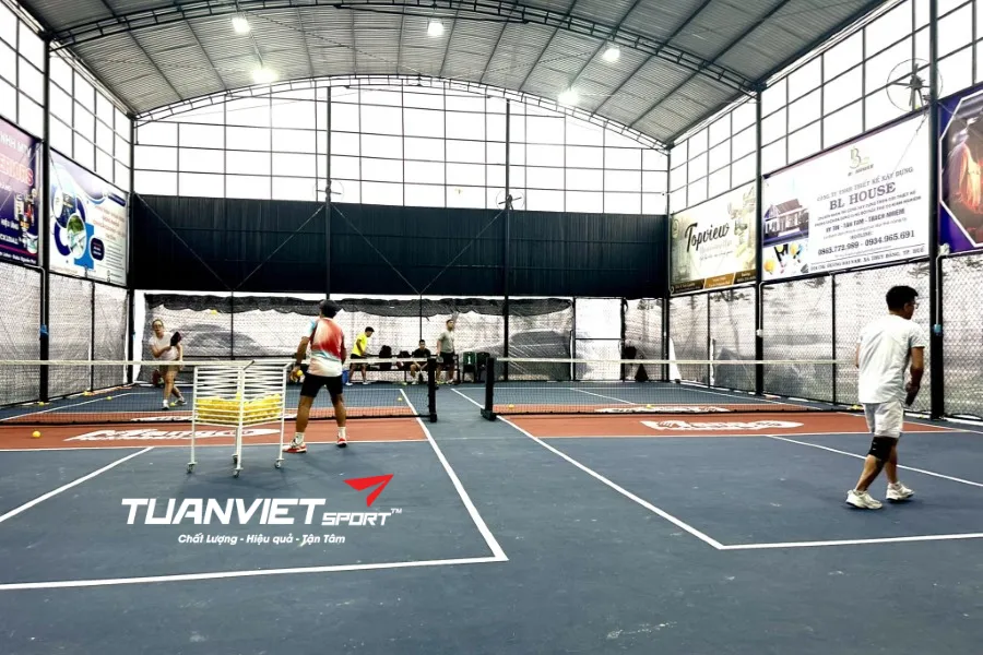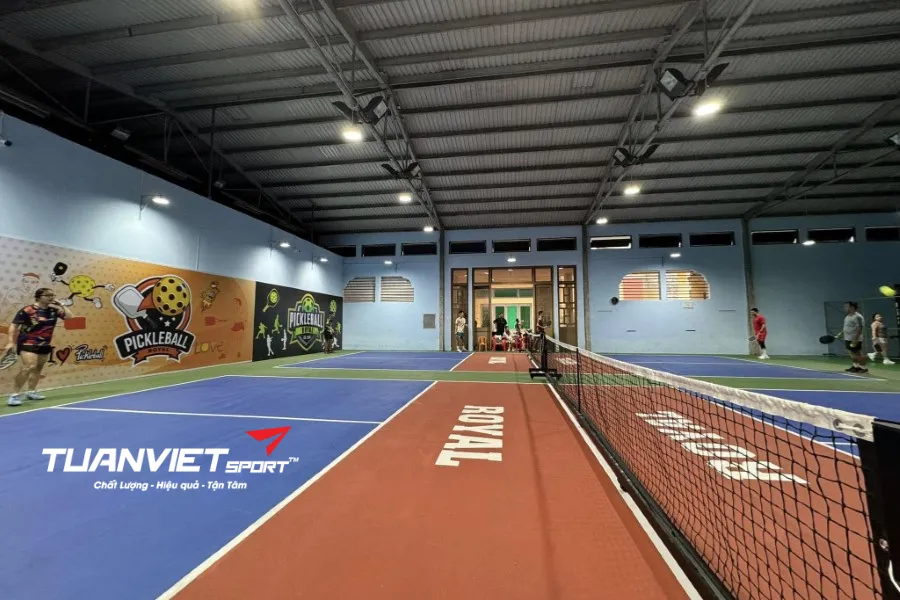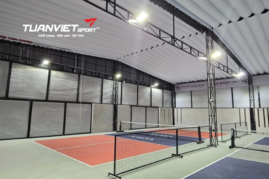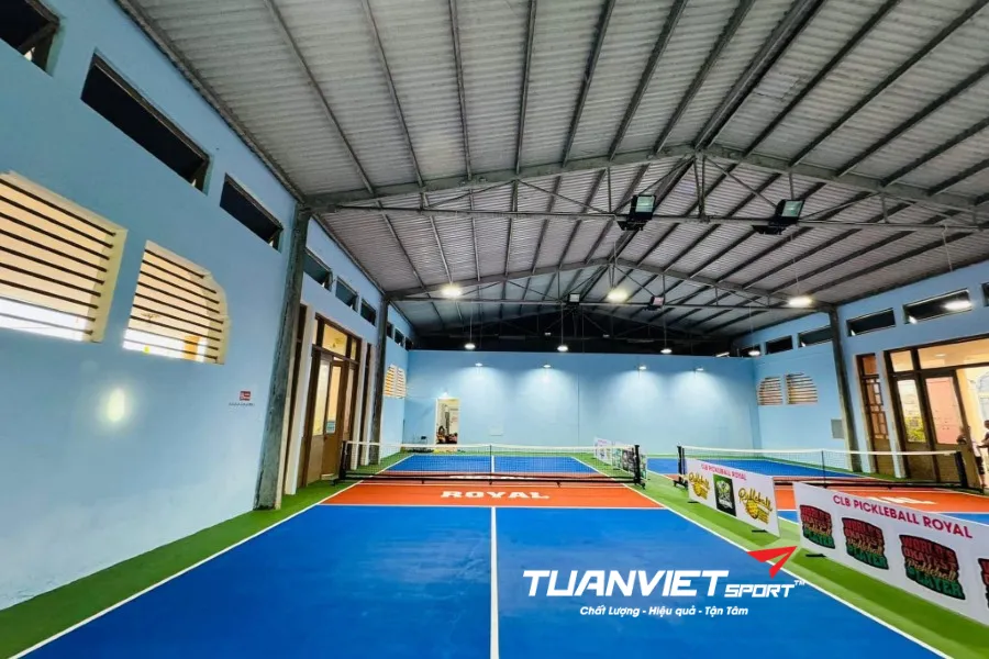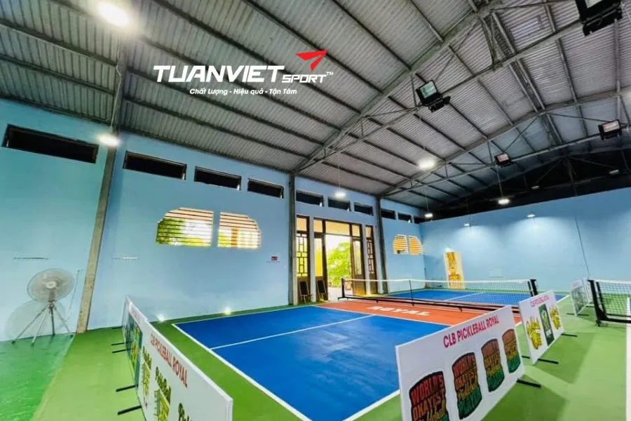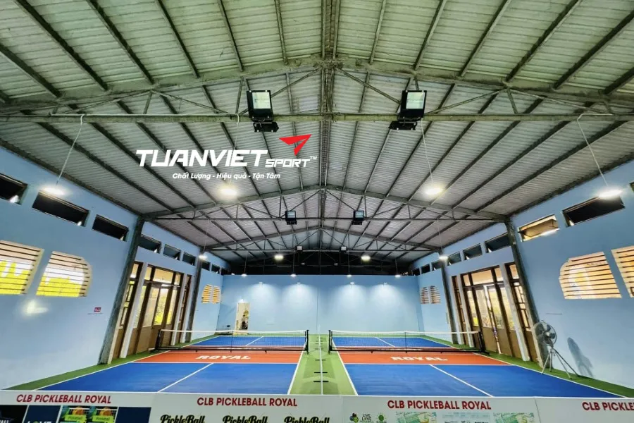 - Quy mô: 4 sân Pickleball trong nhà, thiết kế trần cao, không gian rộng rãi và thoáng mát.