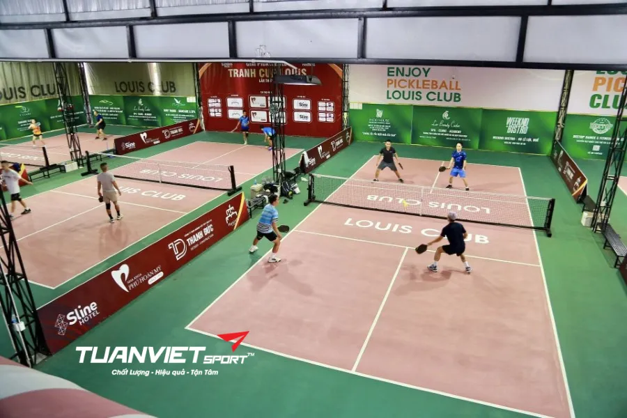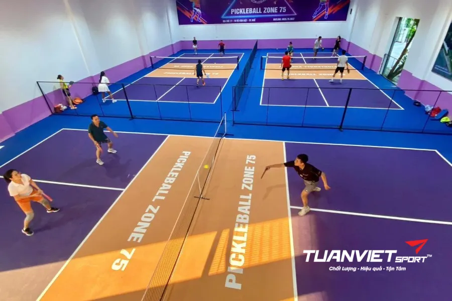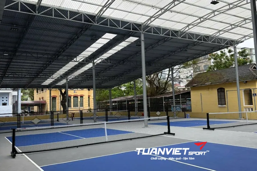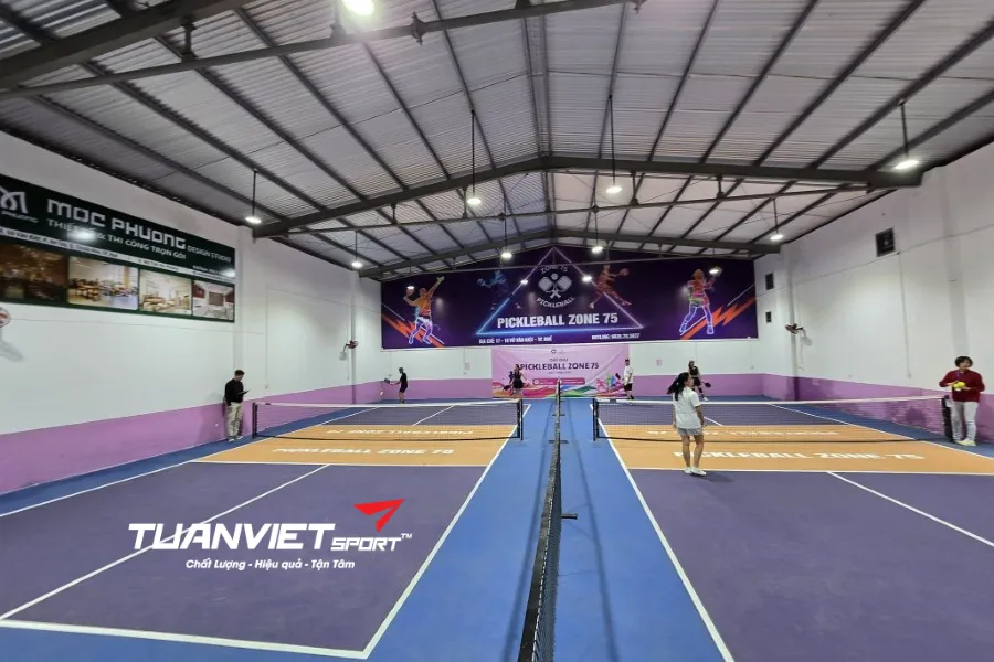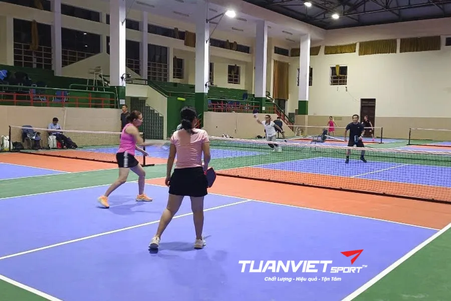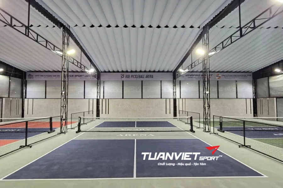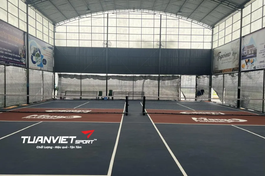 - Quy mô: 4 sân Pickleball trong nhà, thiết kế trần cao, không gian rộng rãi và thoáng mát.
