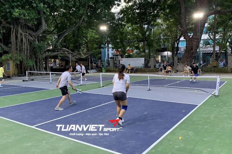 - Hệ thống đèn hiện đại được lắp đặt đồng đều, đảm bảo đủ ánh sáng cho việc chơi Pickleball cả ban ngày lẫn ban đêm.