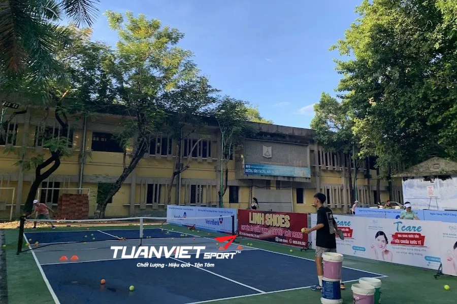 - Vị trí sân: Pickleball Đại học Huế nằm trong khuôn viên chính của Đại học Huế. Vị trí này rất thuận tiện, gần cầu Trường Tiền và các tuyến đường trung tâm như Hùng Vương và Nguyễn Huệ, giúp sinh viên và người dân dễ dàng tiếp cận. Từ Trường THPT chuyên Quốc Học Huế, đi thẳng về hướng Tây Nam dọc theo đường Lê Lợi khoảng 500m. Sau đó, rẽ phải, tiếp tục đi thêm khoảng 84m, rồi rẽ phải một lần nữa. Sân sẽ nằm ở bên phải.