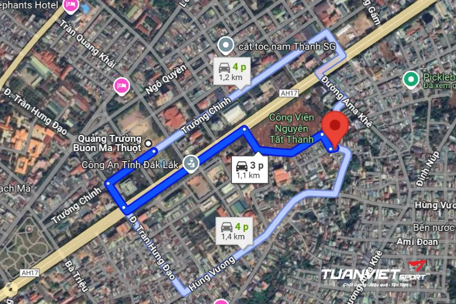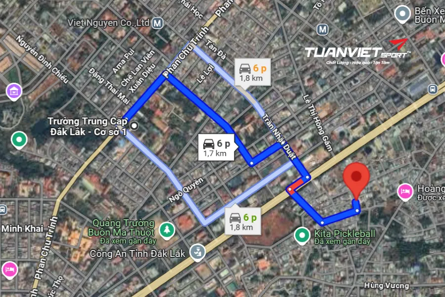 - Vị trí sân: Pickleball Đông Nam nằm gần trung tâm thành phố, thuận tiện cho việc di chuyển từ các khu vực lân cận vì có nhiều tuyến đường. Xung quanh sân là đa dạng các loại tiện ích và dịch vụ đa dạng. Từ Quảng Trường Buôn Ma Thuột, đi theo hướng Trường Chinh rồi rẽ trái vào Trần Quang Khải. Tiếp tục đi thẳng, rẽ phải vào Nguyễn Đình Chiểu, sau đó rẽ trái và di chuyển khoảng 850m. Đến Trần Cừ, rẽ phải và đi thêm 200m sẽ thấy sân nằm bên phải.