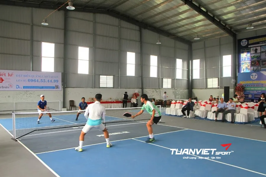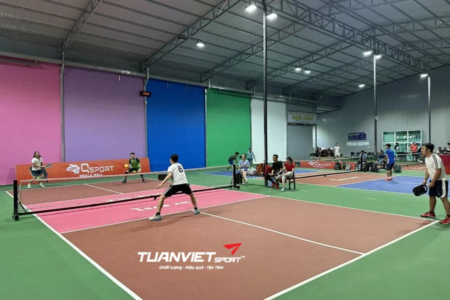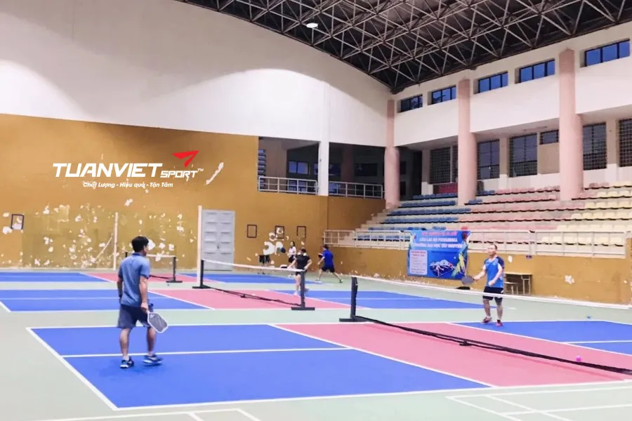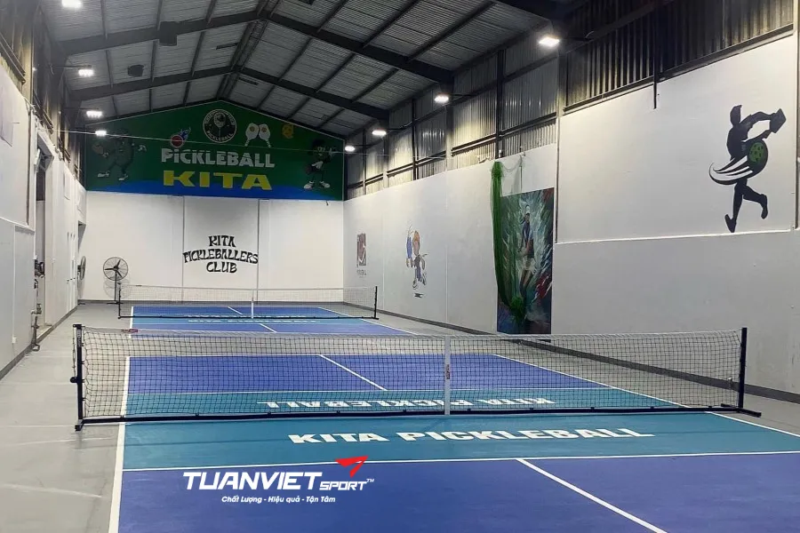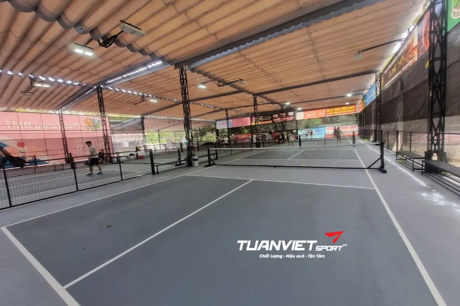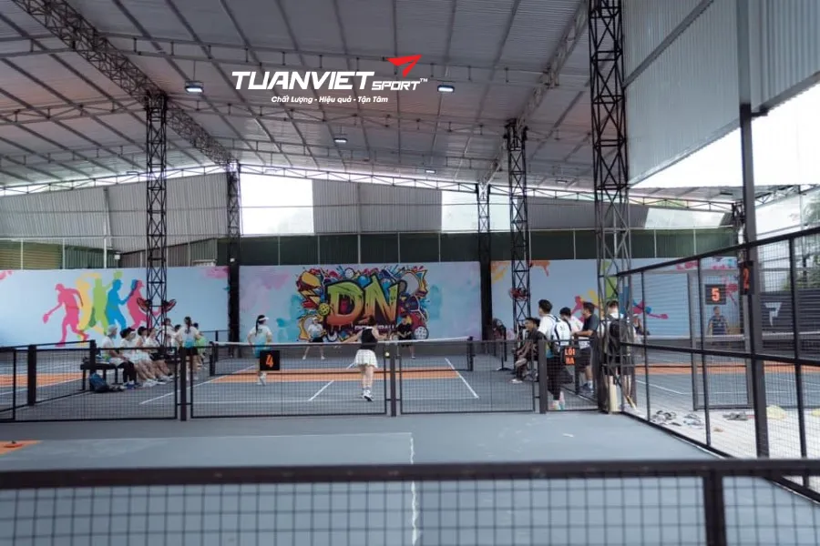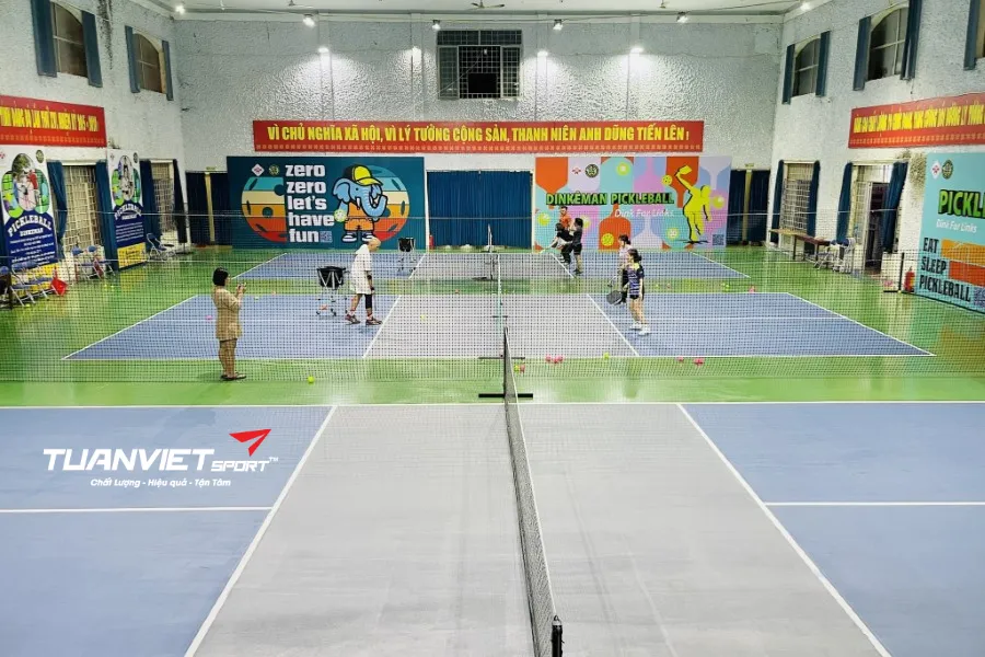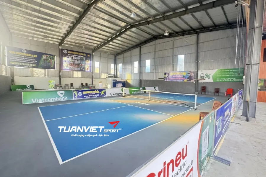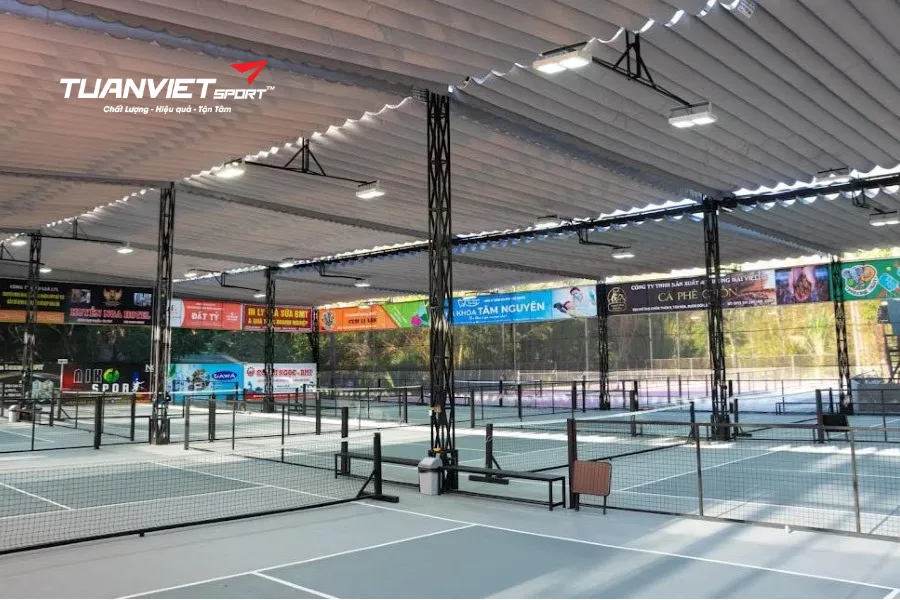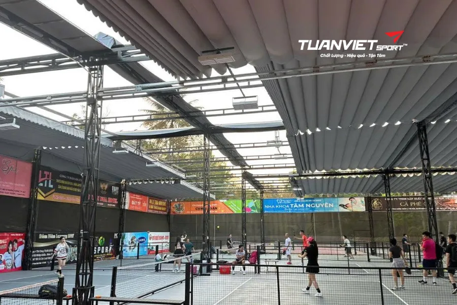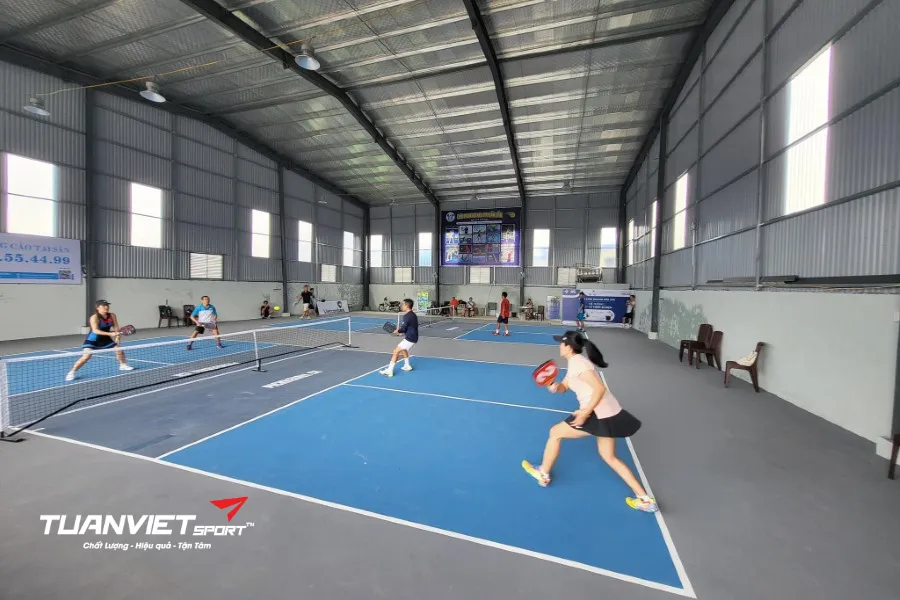 - Quy mô: 4 sân pickleball trong nhà kín gió, có bạt kéo thông thoáng.