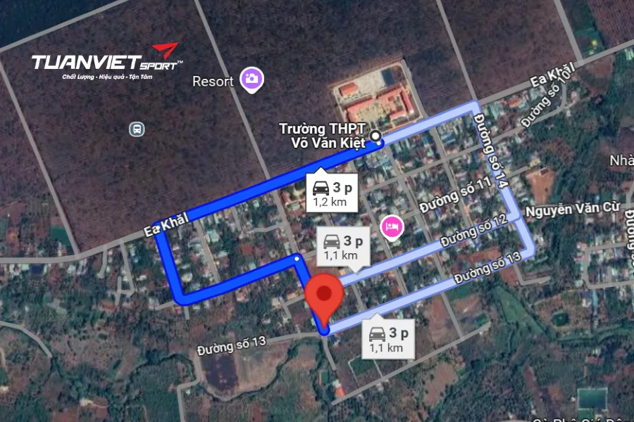 - Vị trí sân: Pickleball Bảo An nằm trong khu vực dân cư sầm uất, xung quanh có nhiều tuyến đường và tiện ích khác. Từ Trường THPT Võ Văn Kiệt, đi theo hướng Tây lên Ea Khăl, tiếp tục đi về phía Đường số 17. Sau khoảng 550 m, bạn sẽ đi qua cửa hàng tiện lợi UgoMart. Tiếp theo, rẽ trái vào Đường số 11, và đi tiếp khoảng 450 m. Rẽ phải vào Đường số 19 và di chuyển thêm khoảng 180 m, sân sẽ nằm phía bên phải.
