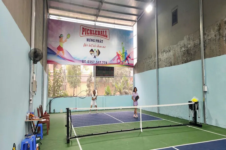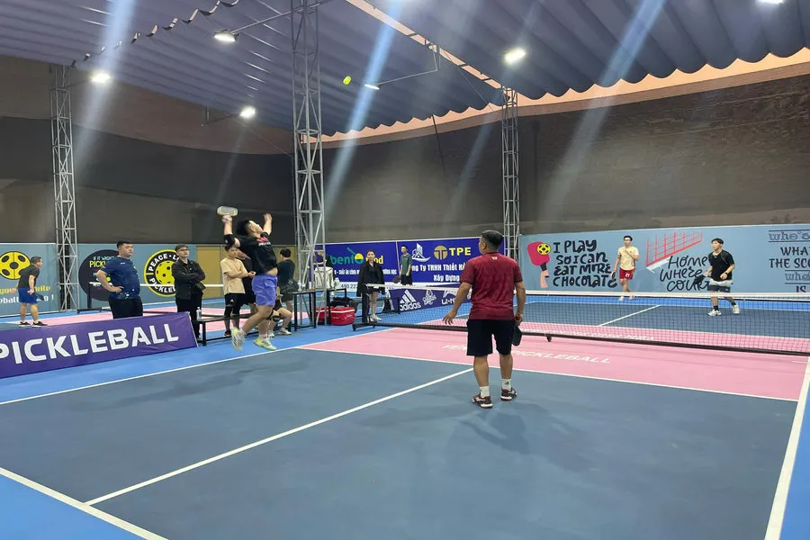 - Dịch vụ và tiện ích: Hệ thống chiếu sáng LED chống chói hiện đại, đảm bảo điều kiện thi đấu cả ngày lẫn đêm. Khu vực nghỉ ngơi rộng rãi, được bố trí đầy đủ ghế ngồi và quạt máy, giúp người chơi thư giãn sau khi vận động. Bãi giữ xe rộng rãi, đáp ứng được cả ô tô và xe máy. Dịch vụ cho thuê vợt và bóng Pickleball, hỗ trợ người chơi tập luyện và thi đấu. Tổ chức các lớp học Pickleball từ cơ bản đến nâng cao, giúp người chơi rèn luyện kỹ năng và dễ dàng làm quen với bộ môn này.