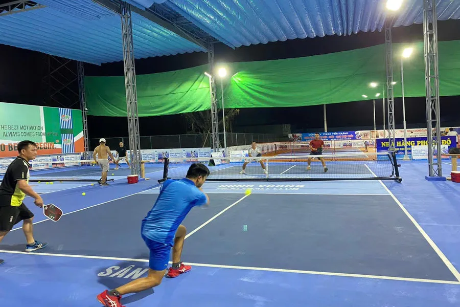 - Dịch vụ và tiện ích: Hệ thống chiếu sáng LED hiện đại, đảm bảo điều kiện thi đấu cả ngày lẫn đêm. Wifi miễn phí, bãi đỗ xe rộng rãi dành cho cả ô tô và xe máy. Khu vực nghỉ ngơi thoải mái, có căng tin phục vụ nước uống và đồ ăn nhẹ. Dịch vụ cho thuê vợt và bóng Pickleball, hỗ trợ người chơi tập luyện và thi đấu.