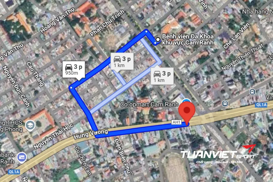 - Vị trí sân: Pickleball PK Club nằm trên trục đường chính của thành phố, thuận tiện cho việc di chuyển từ trung tâm Cam Ranh cũng như từ các khu vực lân cận như sân bay Cam Ranh hay khu du lịch Bãi Dài. Từ Bệnh viện Đa Khoa khu vực Cam Ranh, đi về hướng Tây Nam, sau đó rẽ phải vào đường 22 Tháng 8. Tiếp tục đi thêm 55 m rồi rẽ trái vào đường Lê Hồng Phong. Di chuyển khoảng 350 m, rẽ trái vào đường Huỳnh Thúc Kháng. Đi thêm 190 m, rẽ trái vào đường Hùng Vương (Quốc lộ 1A). Đi thêm 350 m nữa, sân sẽ nằm bên phải.