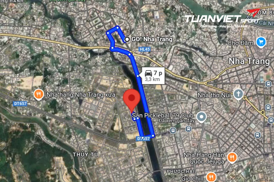 - Vị trí sân: Pickleball Ngọc Hội - PKBNT nằm trong khu vực Vĩnh Thái, gần trung tâm Nha Trang, thuận tiện di chuyển từ các khu vực như Vĩnh Hải, Phước Tân và Phước Đồng. Xung quanh sân là đa dạng các loại tiện ích và dịch vụ đa dạng. Từ Go Nha Trang, đi hướng Tây Bắc lên đường 19 Tháng 5 khoảng 270m. Sau đó, rẽ trái vào đường Hoàng Cầm. Tiếp theo, rẽ trái vào đường Trần Hữu Duyệt, đi qua một vòng xuyến và Mắt Kính Thành Long. Tại vòng xuyến tiếp theo, đi theo lối ra thứ 2 vào đường 23 Tháng 10/ĐCT Bắc – Nam Phía Đông/QL1C, sau đó chếch sang phải, đi thêm 130m và sân sẽ nằm ở phía bên phải.