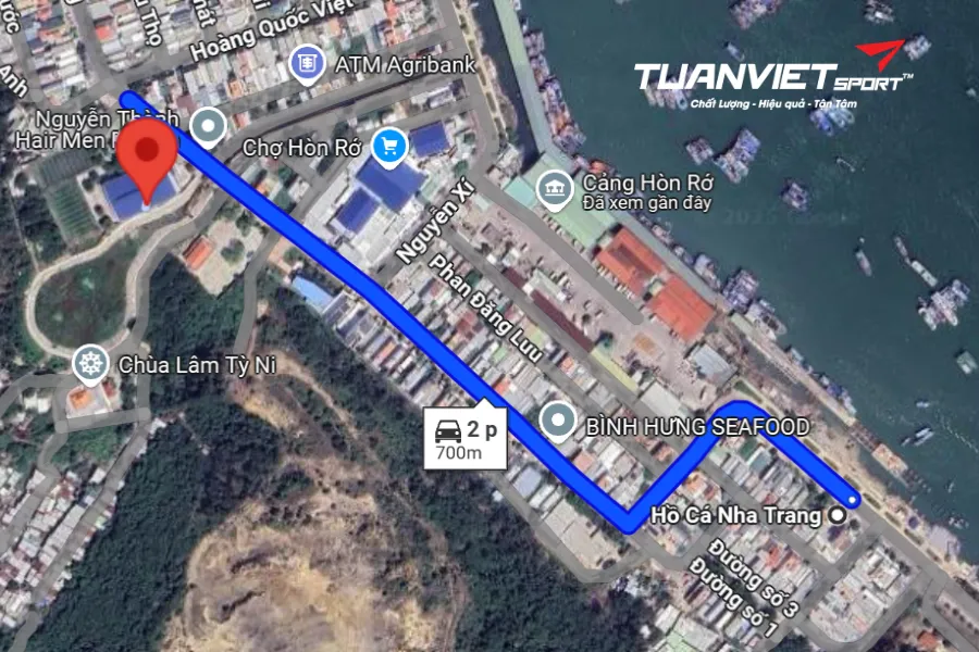 - Vị trí sân: Pickleball Hòn Rớ tọa lạc tại Nhà thi đấu thể thao trên đường Tôn Đức Thắng, khu vực Hòn Rớ, phường Phước Đồng, thành phố Nha Trang, Khánh Hòa. Vị trí này nằm ở phía Nam thành phố, gần cảng cá Hòn Rớ và cách trung tâm Nha Trang khoảng 6–7 km, thuận tiện cho việc di chuyển. Từ Hồ Cá Nha Trang, đi theo hướng Tây Bắc lên đường Nguyễn Văn Linh. Tiếp tục đi thẳng khoảng 700 m dọc theo đường Tôn Đức Thắng, sẽ đi ngang qua Trúc Viên Quán Cafe nằm bên phải. Sân nằm ở phía bên trái, trong khuôn viên Nhà thi đấu thể thao Hòn Rớ.