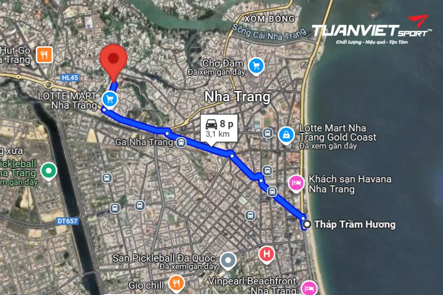 - Vị trí sân: Pickleball Viễn Đông nằm trong khu vực sầm uất, gần biển và các địa điểm du lịch nổi tiếng như Tháp Trầm Hương, chợ Đầm và nhiều khách sạn, nhà hàng, quán cà phê. Vị trí thuận tiện giúp người chơi dễ dàng di chuyển. Từ khách sạn Mường Thanh, đi hướng Nam lên đường Trần Phú khoảng 350m, đi qua Infinity Sea View Apartment ở bên phải. Sau đó, vòng ngược lại tại Mamadelta Retreat, đi tiếp khoảng 850m. Khi đến vòng xuyến, rẽ vào lối ra thứ 2 để vào đường Lê Thánh Tôn. Đi thêm khoảng 150m, sân sẽ ở bên phải.