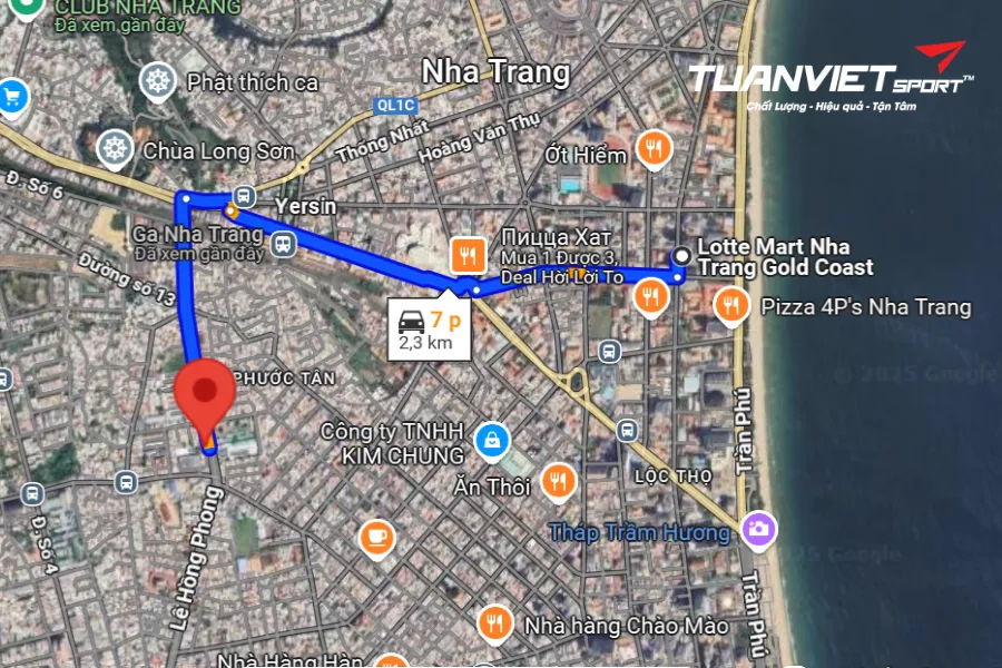 - Vị trí sân: Pickleball Olala nằm trong khu vực dân cư phát triển, dễ dàng tiếp cận từ trung tâm thành phố qua các trục đường lớn như Lê Hồng Phong và Nguyễn Thị Minh Khai. Khu vực xung quanh sân có nhiều tiện ích và dịch vụ đa dạng. Từ Lotte Mart Nha Trang Gold Coast, theo hướng Nam trên đường Trần Hưng Đạo, đi qua trạm xe buýt sân bay bên trái, rồi tiếp tục theo đường Trần Phú và Hoàng Diệu để đến phường Phước Long. Khi đến gần đường Thích Quảng Đức, rẽ phải và đi thêm khoảng 130 m là sẽ thấy sân nằm bên tay trái.
