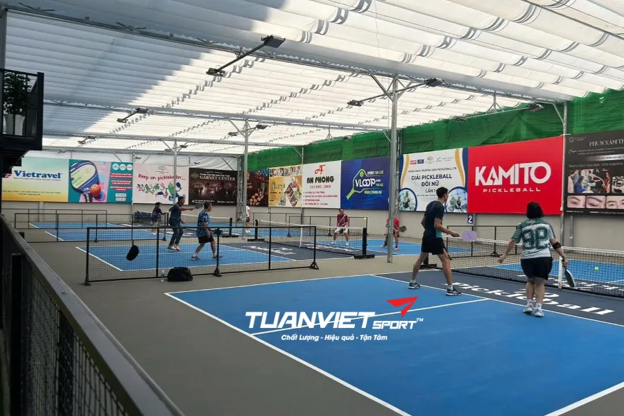- Hệ thống chiếu sáng LED hiện đại, phân bổ đồng đều, đảm bảo ánh sáng tối ưu cho các trận đấu Pickleball cả ban ngày lẫn ban đêm.