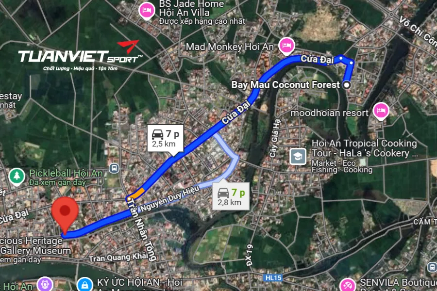 - Vị trí sân: Pickleball Hot Kitchen nằm trên trục đường chính kết nối trung tâm phố cổ Hội An với các khu vực lân cận, thuận tiện cho việc di chuyển. Khu vực xung quanh là khu dân cư phát triển, với nhiều tiện ích và dịch vụ đa dạng. Từ Chợ Hội An, đi về hướng Đông khoảng 130m, sau đó rẽ trái vào đường Hoàng Diệu. Tiếp tục đi thẳng 290m đến bưu điện, rồi nhập vào đường Ngô Gia Tự và đi thêm 260m. Tại Đặc sản Hồng Hạnh, rẽ trái vào đường Lý Thường Kiệt, đi khoảng 550m đến ngã rẽ thì rẽ phải vào Phan Đình Phùng. Sau khi đi thêm 600m, rẽ trái vào đường Lý Thái Tổ. Đi khoảng 100m nữa, sân nằm bên tay trái.