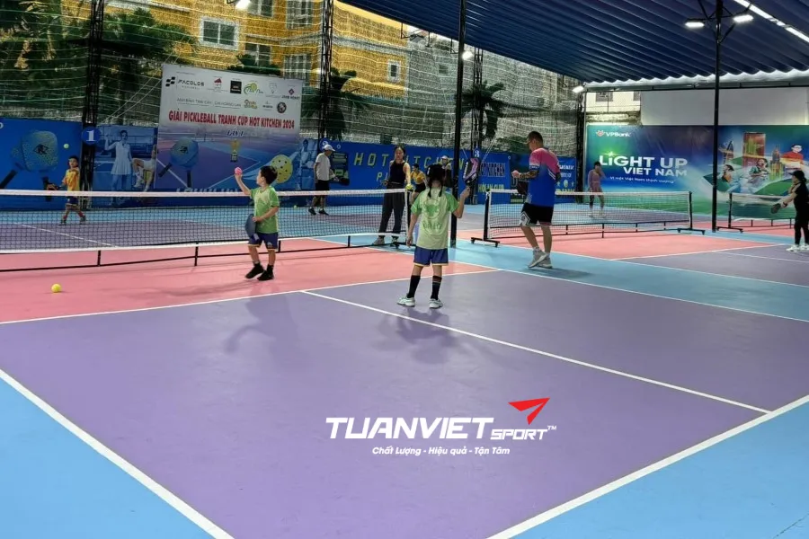 - Ngoài ra, sân còn tổ chức các lớp học Pickleball cơ bản, giúp người chơi rèn luyện kỹ năng, nâng cao trình độ và cho thuê vợt, bóng Pickleball.