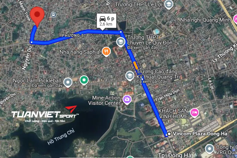 - Vị trí sân: Pickleball Duy Đình nằm gần trung tâm thành phố, thuận tiện cho việc di chuyển từ các khu vực lân cận. Khu vực xung quanh sân là khu dân cư yên tĩnh, với nhiều tiện ích và dịch vụ đa dạng khác. Từ Bảo tàng Tỉnh Quảng Trị, di chuyển theo hướng Nguyễn Huệ về phía Hùng Vương, quãng đường khoảng 900m. Sau đó, tiếp tục theo đường Trần Hưng Đạo khoảng 650m đến khi gặp đường Bùi Thị Xuân. Từ đây, đi tiếp khoảng 750m rồi rẽ trái tại quán Coffee TIME vào đường Đặng Dung. Tiếp tục thêm khoảng 600m nữa, sẽ thấy sân nằm bên phải đường.
