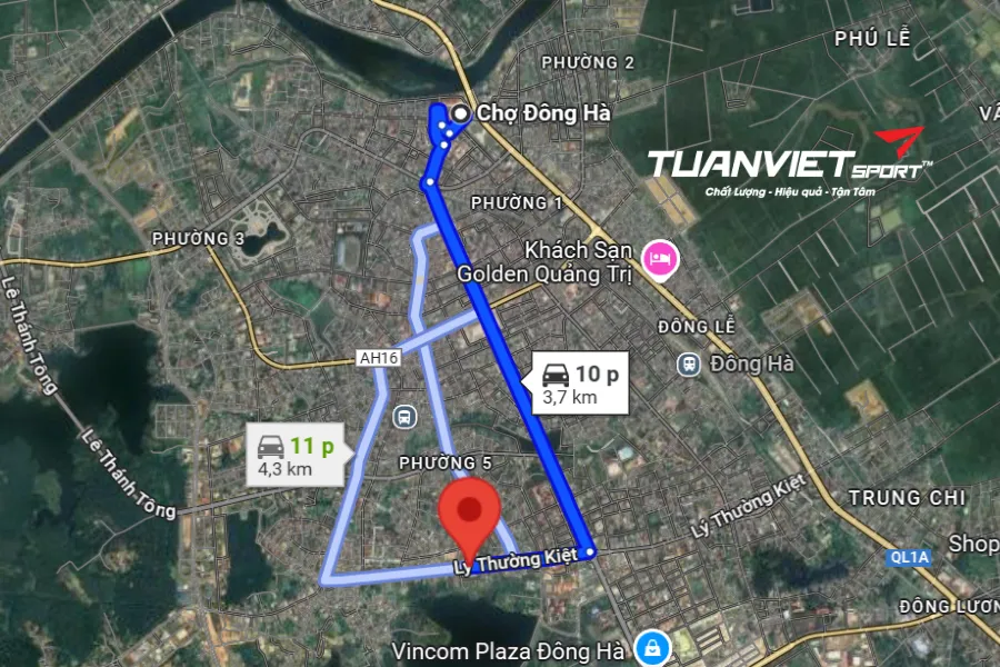 - Vị trí sân: Pickleball Ngọc Lâm tọa lạc trên đường Lý Thường Kiệt là một trong những tuyến đường huyết mạch của Đông Hà, thuận tiện cho việc di chuyển và kết nối với các khu vực khác trong thành phố. Từ Trường THPT chuyên Lê Quý Đôn, đi theo hướng Đông khoảng 9m, sau đó chếch sang trái vào đường Lương Thế Vinh. Tiếp tục đi thẳng và rẽ phải tại tiệm Cơ khí Thành Đạt để ra lại đường Hùng Vương. Tại vòng xuyến, rẽ theo lối ra thứ nhất để vào đường Lý Thường Kiệt. Tiếp tục di chuyển thêm khoảng 850m, đi qua Hoa Giang Cosmetic Shop sẽ thấy sân nằm bên tay trái.