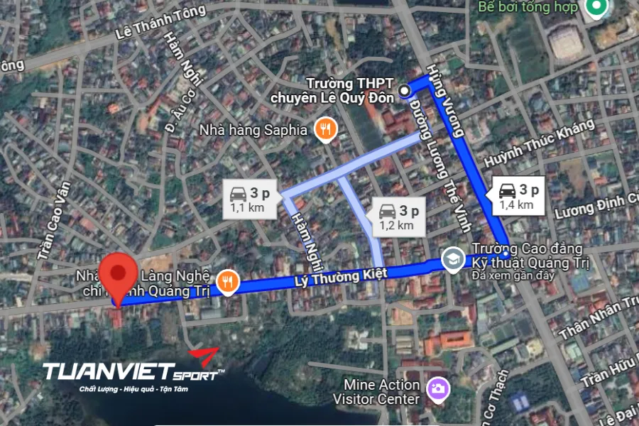 - Vị trí sân: Pickleball Hướng Hóa nằm trong một quần thể thể thao đa năng. Vị trí của sân gần trung tâm thị trấn Khe Sanh, thuận tiện cho việc di chuyển và tiếp cận từ các khu vực lân cận. Từ Chợ Khe Sanh, bắt đầu đi về hướng Tây trên đường Ngô Sĩ Liên, sau đó rẽ trái vào đường Lê Duẩn/QL9. Tiếp tục đi thẳng qua Bến xe Khe Sanh khoảng 1,4 km, rẽ phải tại Garage Anh Kiệt vào đường Trường Chinh. Đi thêm khoảng 1,3 km nữa, sân sẽ nằm bên phải.
