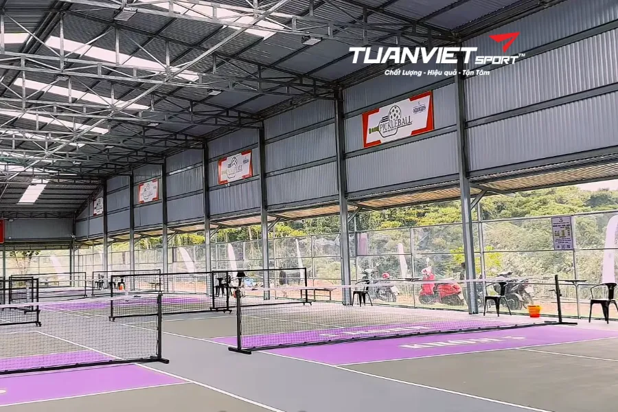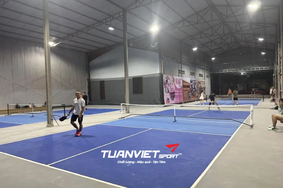 - Quy mô: 2 sân trong nhà, với mái che kiên cố và trần cao, đảm bảo an toàn và tạo cảm giác thoải mái cho người chơi.