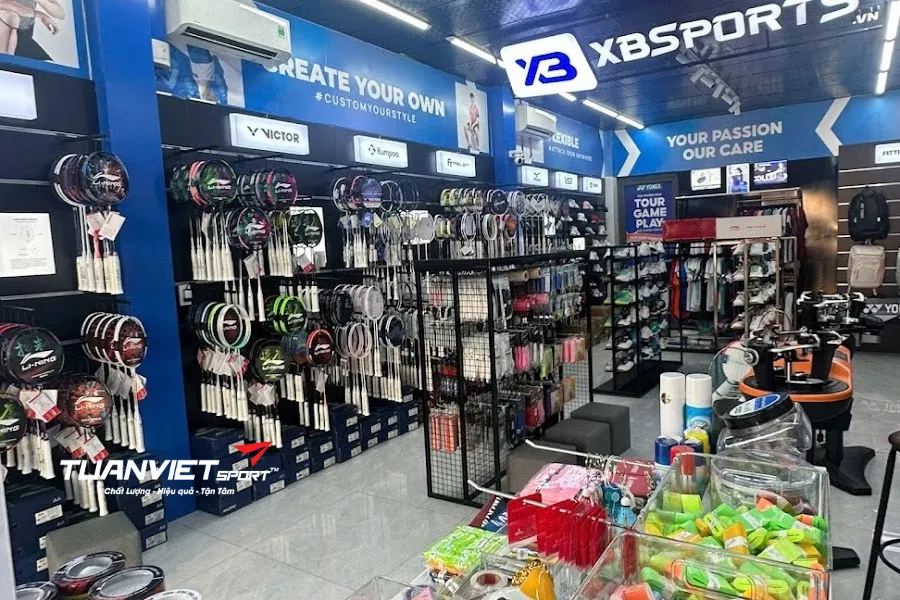 - Điểm nổi bật: Cửa hàng sở hữu diện tích không quá rộng nhưng được sắp xếp một cách khoa học và hợp lý để trưng bày đầy đủ các mặt hàng. Cách bài trí cửa hàng khoa học giúp dễ dàng tìm thấy sản phẩm mình cần một cách nhanh chóng. Bên cạnh đó, đội ngũ nhân viên thân thiện, nhiệt tình luôn tức trục và sẵn sàng tư vấn khách hàng trong việc lựa chọn sản phẩm phù hợp nhất theo nhu cầu. Tại đây, khách hàng có thể tìm thấy mọi thứ mình cần, từ những cây vợt mới nhất, những đôi giày công nghệ cao, trang phục thi đấu thời trang đến các phụ kiện nhỏ nhất từ các thương hiệu hàng đầu thế giới như Yonex, Lining, Victor, VS,... Một trong những yếu tố làm nên uy tín của XBSPORTS là dịch vụ đan vợt lấy ngay, quấn cán chuyên nghiệp, nhanh chóng và tiện lợi với hệ thống máy đan điện tử hiện đại, cửa hàng cam kết mang đến mặt lưới căng đều, ổn định, phù hợp từng kiểu đan theo yêu cầu. Vợt được tiếp nhận và xử lý cẩn thận, giúp người chơi sẵn sàng ra sân mà không mất thời gian chờ đợi. Các chương trình ưu đãi hấp dẫn cũng được cửa hàng áp dụng khi khách hàng mua sản phẩm sẽ có quà tặng đi kèm.