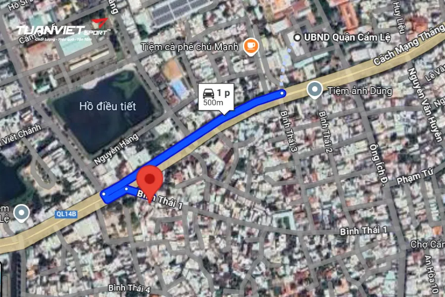 - Vị trí cửa hàng: Shop cầu lông Tuấn Hạnh Badminton nằm trong một khu vực dân cư sầm uất và phát triển của quận Cẩm Lệ, Đà Nẵng. Vị trí này thuận tiện cho việc di chuyển từ các tuyến đường lớn, giúp khách hàng dễ dàng tiếp cận từ trung tâm thành phố cũng như các khu vực lân cận. Từ UBND quận Cẩm Lệ, đi thẳng theo hướng Tây lên đường Cách Mạng Tháng 8 (QL14B) khoảng 400m, sẽ đi qua Phòng Khám & Chữa Bệnh Tổng Quát bên phải. Vòng xe lại và tiếp tục khoảng 56m, sau đó rẽ phải vào đường Bình Thái 1, đi thêm 53m, cửa hàng sẽ nằm bên phải.