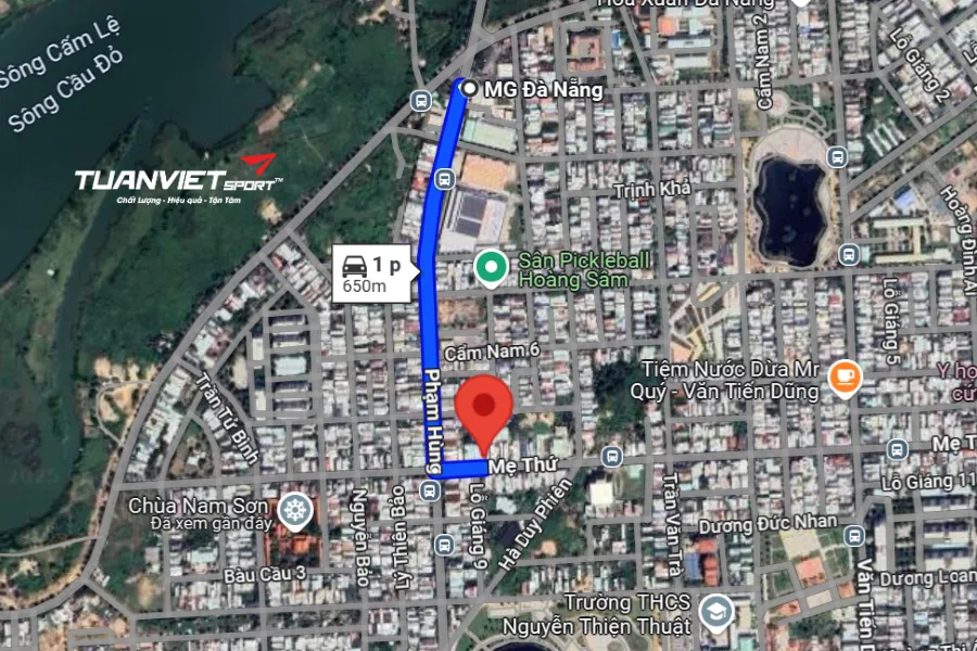 - Vị trí cửa hàng: Quang Tuệ Badminton nằm trong khu đô thị mới Hòa Xuân – một khu vực đang phát triển năng động với hạ tầng hiện đại và giao thông thuận tiện. Vị trí này dễ dàng tiếp cận từ các quận trung tâm, rất phù hợp cho người chơi cầu lông ở khu vực phía Nam và Tây Nam thành phố. Từ MG Đà Nẵng, đi thẳng 600m theo đường Phạm Hùng, sau đó rẽ trái vào đường Mẹ Thứ tại Siêu thị Điện máy XANH. Đi thêm khoảng 75m, cửa hàng sẽ nằm bên trái.