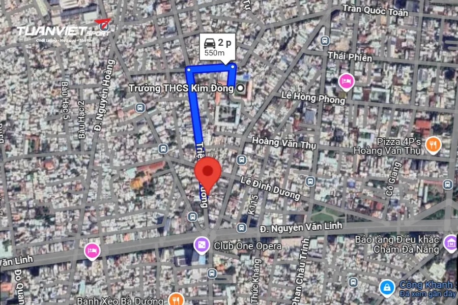 - Vị trí cửa hàng: VNB Sports Đà Nẵng nằm tại tuyến phố trung tâm sầm uất của quận Hải Châu. Khu vực này đông đúc dân cư, gần nhiều tuyến đường lớn và tiện ích, rất thuận tiện cho việc mua sắm và di chuyển. Từ trường THCS Kim Đồng, đi về hướng Bắc lên K140 Hoàng Diệu, rẽ trái vào Nguyễn Trãi, sau đó rẽ trái vào Triệu Nữ Vương. Đi khoảng 350m, cửa hàng sẽ nằm bên trái.