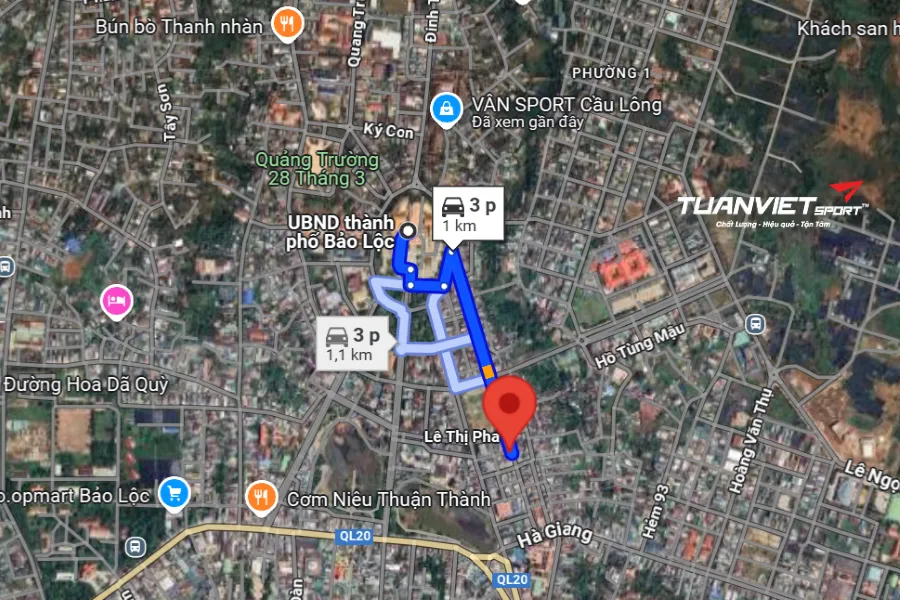 - Vị trí cửa hàng: VNB Sports nằm trên tuyến đường lớn Phan Bội Châu – một trong những tuyến phố trung tâm sầm uất và dễ nhận diện. Shop tọa lạc ngay gần khu vực trung tâm, thuận tiện cho việc di chuyển và mua sắm. Từ UBND thành phố Bảo Lộc, đi về hướng Tây khoảng 140m, sau đó rẽ phải rồi tiếp tục rẽ trái vào đường Hồng Bàng. Tiếp tục đi thẳng khoảng 100m, rẽ phải tại Hội Quần Vợt Thị Xã Bảo Lộc vào đường Phan Bội Châu. Từ đây, đi thêm khoảng 600m, cửa hàng sẽ nằm bên phải.