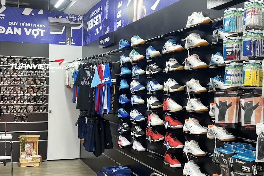 - Điểm nổi bật: Cửa hàng sở hữu không gian hiện đại, gọn gàng và dễ dàng tham quan, giúp khách hàng thuận tiện khi chọn mua sản phẩm. Việt Badminton cung cấp đầy đủ các mặt hàng cầu lông chính hãng từ những thương hiệu uy tín như Yonex, Lining, Victor, Apacs, Kawasaki… phù hợp với cả người chơi phong trào lẫn vận động viên chuyên nghiệp. Điểm nổi bật của shop là dịch vụ căng vợt chuẩn kỹ thuật, sử dụng máy hiện đại cùng đội ngũ nhân viên có tay nghề cao, đảm bảo độ chính xác và an toàn cho từng cây vợt.