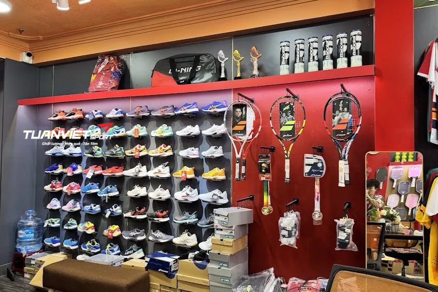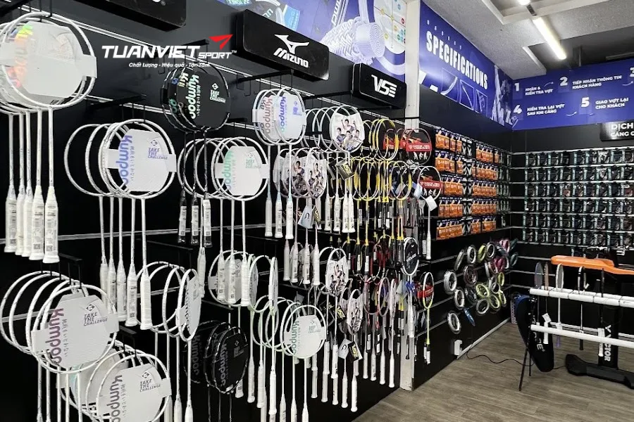 - Điểm nổi bật: Cửa hàng được bố trí khoa học, rộng rãi và dễ quan sát, mang lại cảm giác thoải mái khi mua sắm. LÊ SA SPORTS cung cấp đa dạng sản phẩm chính hãng từ các thương hiệu uy tín như Yonex, Victor, Kumpoo, Lining,… với mức giá phải chăng, phù hợp từ người chơi phổ thông đến chuyên nghiệp. Ngoài việc cung cấp sản phẩm chất lượng, cửa hàng còn thường xuyên triển khai các combo ưu đãi như mua vợt tặng dây và quấn cán giúp khách hàng tiết kiệm chi phí mà vẫn đầy đủ trang bị. Bên cạnh đó, cửa hàng cũng ghi điểm với dịch vụ chuyên nghiệp: đan vợt nhanh trong ngày, nhận đổi trả theo quy định cửa hàng.