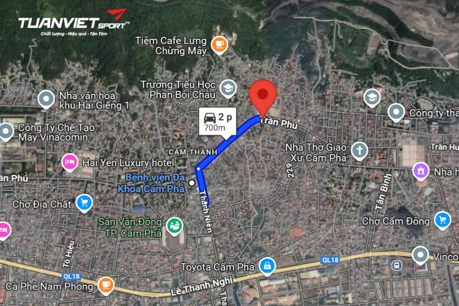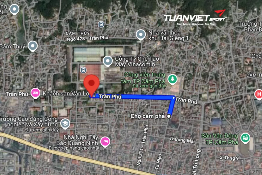 - Vị trí cửa hàng: Trần Hiếu Sport tọa lạc trên trục đường chính trung tâm thành phố, dễ tìm và thuận tiện giao thông . Khu vực xung quanh là khu dân cư sầm uất, gần các tiện ích, thuận tiện cho cả khách hàng địa phương và những người đến từ TP. Hạ Long hoặc vùng lân cận ghé thăm. Từ Bệnh viện Đa khoa Cẩm Phả, đi về hướng Bắc lên đường Thanh Niên khoảng 210m, sẽ đi qua Trạm Biến Áp 110kV Cẩm Phả. Sau đó rẽ phải tại hiệu thuốc và tiếp tục khoảng 500m, cửa hàng sẽ nằm bên phải.