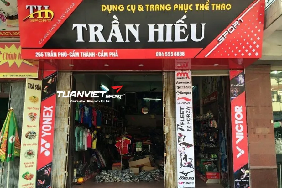 - Điểm nổi bật: Cửa hàng dù không quá lớn nhưng luôn mang đến trải nghiệm mua sắm chất lượng. Nơi đây chuyên cung cấp đa dạng vợt và phụ kiện cầu lông chính hãng từ các thương hiệu uy tín như Lining, Kumpoo, VS,… với mức giá hợp lý, phù hợp cho cả người mới chơi lẫn vận động viên chuyên nghiệp. Bên cạnh đó, Trần Hiếu Sport còn nổi bật với các dịch vụ như đan vợt chuẩn xác, quấn cán lấy liền, cùng chính sách đổi trả đảm bảo, đáp ứng tốt nhu cầu của người chơi phong trào và thi đấu.