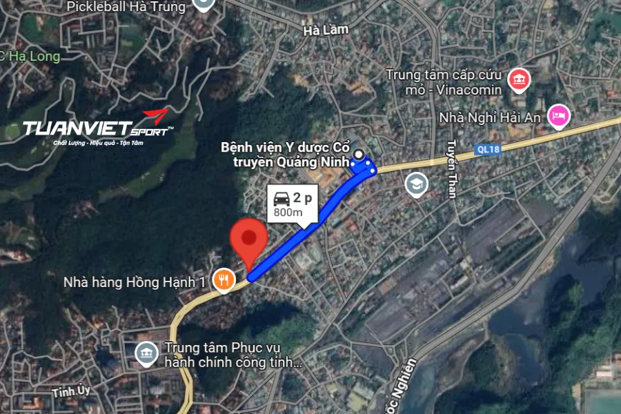 - Vị trí cửa hàng: Hưng Quảng Sport nằm trên trục đường lớn kết nối các phường trọng điểm, dễ tìm và thuận tiện di chuyển. Xung quanh là nhiều tiện ích và dịch vụ, phù hợp để khách ghé thăm mua sắm hoặc được tư vấn trực tiếp. Từ Bệnh viện Y dược Cổ truyền Quảng Ninh, đi về hướng Tây Nam khoảng 45m, sau đó rẽ trái vào đường Nguyễn Văn Cừ/QL18. Tiếp tục rẽ phải tại GYM FITNESS và đi thêm 36m, rồi rẽ phải một lần nữa tại Hoàng Minh Mobile. Đi thẳng khoảng 650m trên trục Nguyễn Văn Cừ, cửa hàng sẽ nằm bên phải.