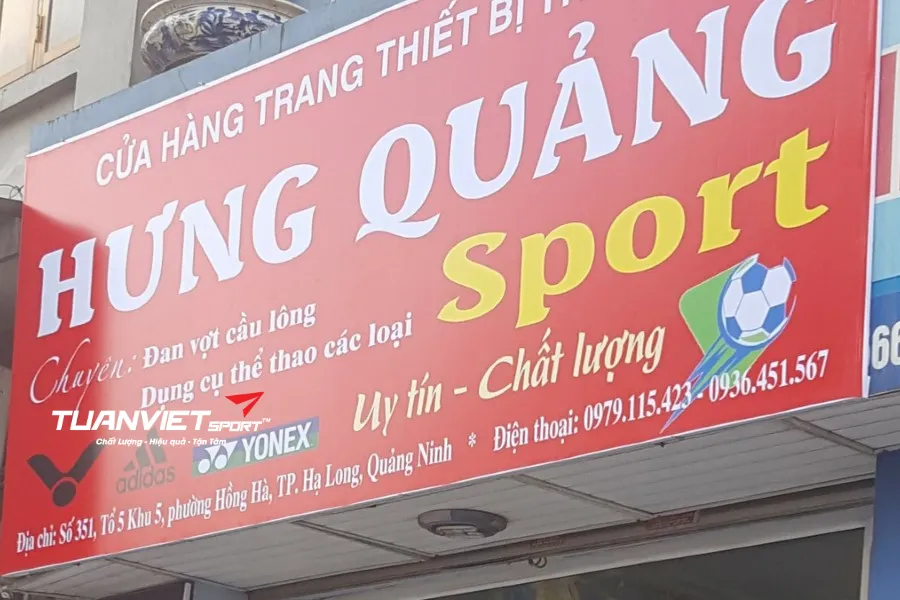 - Điểm nổi bật: Hưng Quảng Sport là địa chỉ uy tín chuyên cung cấp vợt cầu lông, giày thi đấu, trang phục và phụ kiện thể thao chính hãng từ các thương hiệu lớn như Yonex, Lining, Victor… Shop nổi bật với hàng hóa đa dạng, luôn cập nhật mẫu mã mới, cùng dịch vụ tư vấn tận tình, phù hợp với từng trình độ người chơi. Ngoài ra, Hưng Quảng Sport còn hỗ trợ giao hàng nhanh trong khu vực, bảo hành chính hãng và đổi trả linh hoạt, mang đến trải nghiệm mua sắm đáng tin cậy cho khách hàng tại Quảng Ninh.