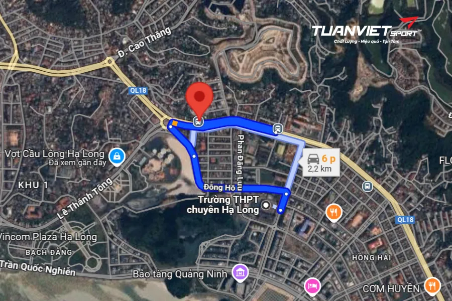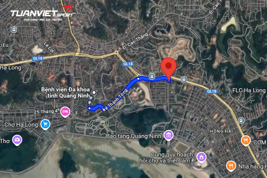 - Vị trí cửa hàng: TH SPORT Hạ Long nằm trong khu trung tâm sầm uất, gần Bãi Cháy, dễ tìm. Vị trí thuận tiện cho cả người dân địa phương và du khách, xung quanh có nhiều tiện ích và dịch vụ. Từ Bệnh viện Đa khoa tỉnh Quảng Ninh, đi về hướng Nam lên đường Tuệ Tĩnh, sau đó rẽ trái vào Lê Hữu Trác và tiếp tục 230m. Tiếp tục rẽ trái vào Lê Thánh Tông, đi khoảng 600m đến vòng xuyến, chọn lối ra thứ 2 và đi thêm 400m. Cuối cùng, rẽ phải vào Phan Đăng Lưu, cửa hàng sẽ nằm bên phải.