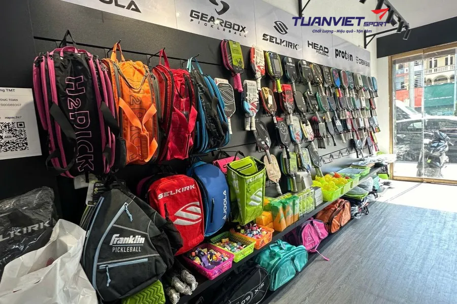 - Mặt hàng kinh doanh: Chuyên cung cấp đầy đủ các sản phẩm cầu lông chính hãng, bao gồm vợt, quần áo, giày, túi đựng, balo cùng các phụ kiện cần thiết. Bên cạnh đó, cửa hàng còn có thêm các sản phẩm của bộ môn Pickleball.