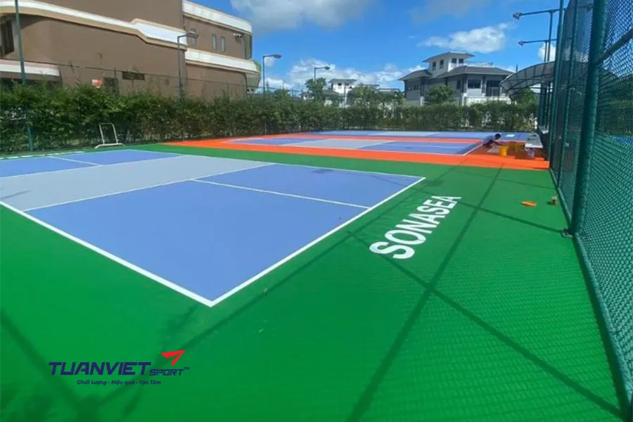 Thi công sân Pickleball: Ưu nhược điểm của sân sơn và sân thảm