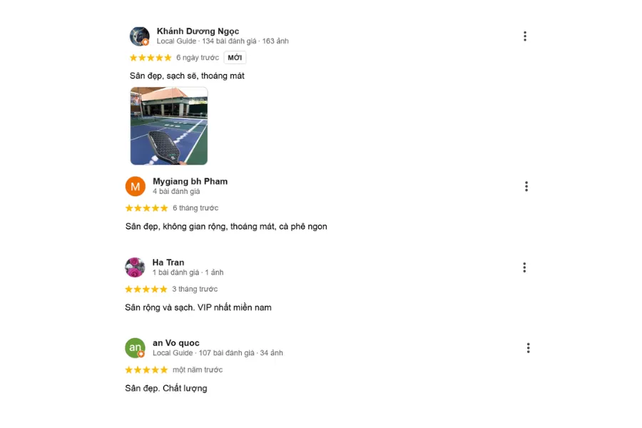 - Đánh giá người chơi khi trải nghiệm sân Pickleball 3H Club & Coffee: