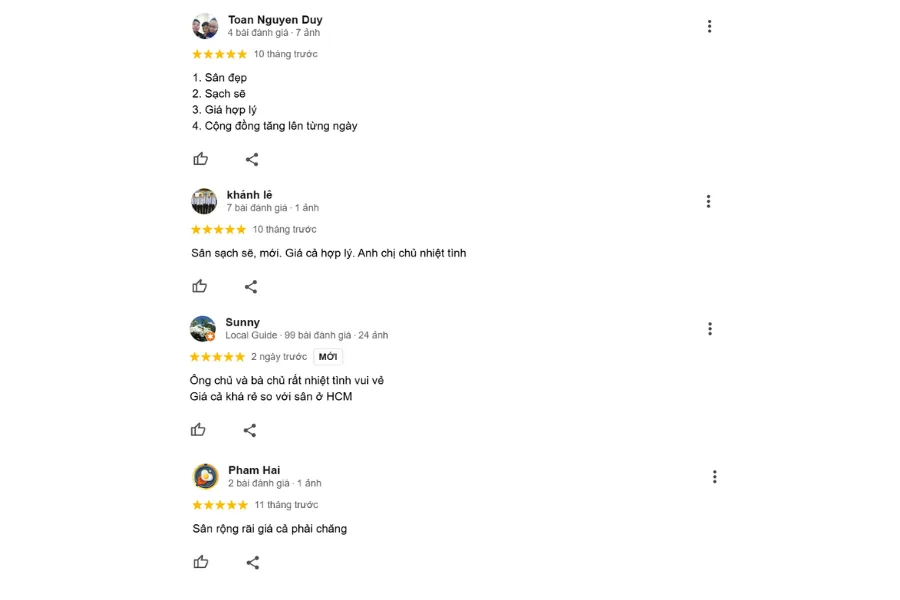- Đánh giá người chơi khi trải nghiệm sân Pickleball Hoàng Gia - Bình Dương: