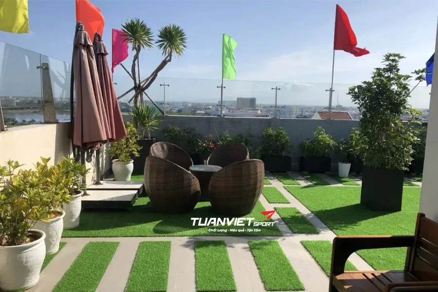- Thiết kế thi công sân vườn, ban công, khu vui chơi trẻ em: Sử dụng cỏ nhân tạo chất lượng cao với giá cả phù hợp, đảm bảo độ bền và tính thẩm mỹ, mang đến không gian xanh mát cho khuôn viên nhà ở của các hộ gia đình và an toàn cho trẻ em vui chơi.